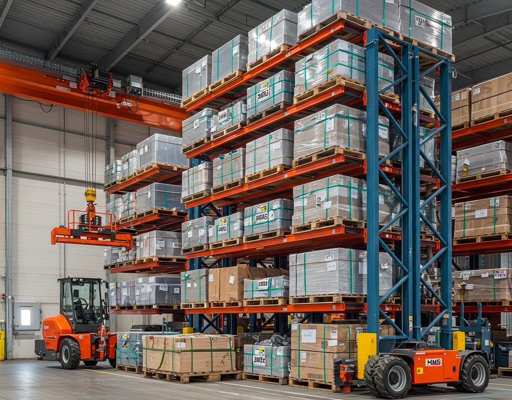Le rayonnage lourd HMS est conçu pour répondre aux besoins des environnements les plus exigeants en matière de stockage. Robuste, modulable et évolutif, ce système est particulièrement adapté à la manutention de charges lourdes sur palettes, dans des secteurs où la solidité et la performance sont indispensables.